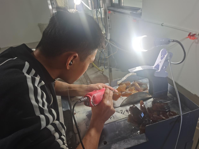 “它的颜色纯正,质地细腻,非常适合制作首饰,更主要的是,它蕴含着深厚的文化内涵,还可以作为收藏品……”直播间内,主播们熟练地介绍岫玉产品的特点、种类和鉴别方法等,而在直播间外,发往全国各地的玉器包裹堆成小山,打包师傅头也不抬地忙碌着……