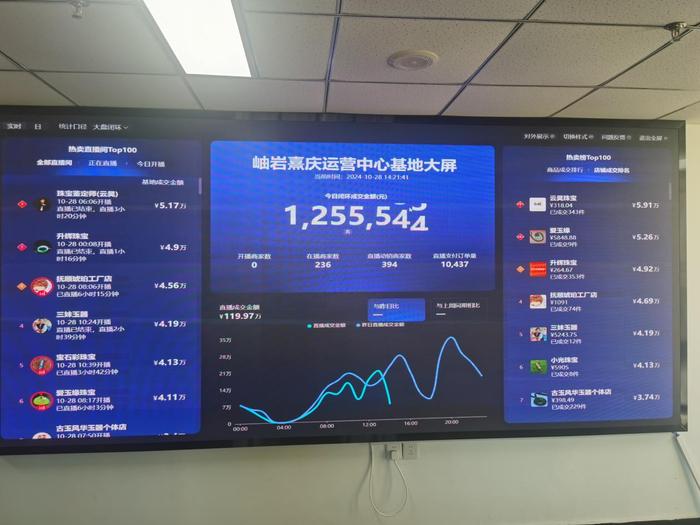 目前,岫岩建成玉产业园和电商创业中心两大电商基地,入驻抖音、快手、京东、拼多多等直播平台,开播直播账号6000余个,预计全年销售额超80亿元。