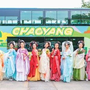 游客身穿汉服体验文旅公交专线游览。北京市文化和旅游局供图