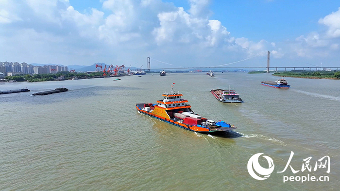 2024年7月7日,远眺深中通道,桥上车辆川流不息。通车试运营后,广东深圳、中山进入“半小时生活圈”,珠江口两岸经济、社会、文化等要素流动加速,大湾区居民跨城“串门”愈加方便。人民网 王星摄