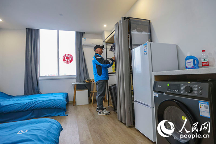 图为上海市普陀区和欣公寓“新时代城市建设者管理者之家”的双人间。近年来,上海加大保障性租赁住房筹措建设力度,着力构建“一张床、一间房、一套房”多层次租赁住房供应体系,让更多群众安居乐业。人民网记者 王初摄