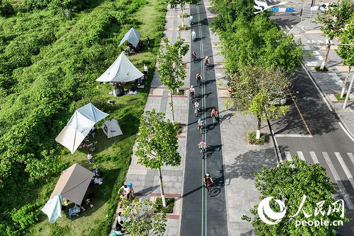 2024年5月5日,重庆金海湾滨江公园,市民在骑行步道上骑车锻炼身体。根据《重庆市体育公园和健身步道“双百计划”实施方案》,到2025年末,重庆将累计建成100座体育公园和100条全民健身步道,逐步形成覆盖面广、类型多样、特色鲜明、普惠性强的体育公园和全民健身步道体系。人民网 邹乐摄