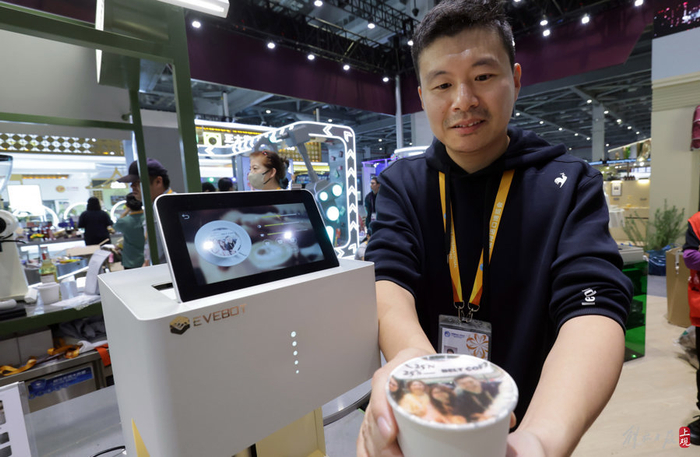 在光明集团展位,展馆搭建布展已基本完成,光明首创现场订制“属于自己头像的进口咖啡”,看得你都舍不得喝。