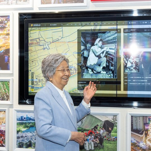 在上海人民城市实践展示馆,黄宝妹与年轻的自己同框合影(央广网发 受访者供图)
