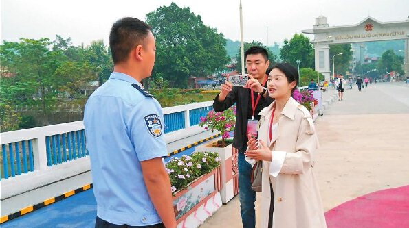 在河口公路口岸南溪河联检大楼,巡访团成员体验了便捷的通关流程,在边境线上驻足欣赏南溪河沿岸的旖旎风光,感受浓郁的异域风情。一侧的中越铁路大桥上,从越南缓缓驶入中国的米轨火车引发阵阵惊叹,大家纷纷掏出相机、手机记录下这一中越贸易往来的生动场景。