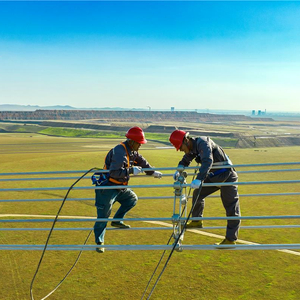 工程建设人员在特高压电网进行附件安装作业。徐佳琪 摄