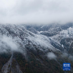 这是11月19日拍摄的文县天池国家森林公园雪景(无人机照片)。新华社记者 郎兵兵 摄