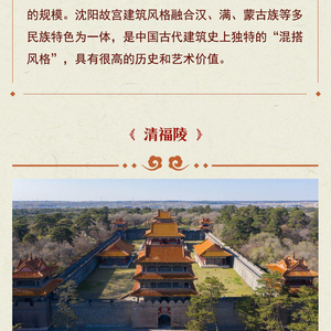 沈阳故宫、清昭陵、清福陵这三处世界文化遗产地,可观中国古建之美,也能领略沈阳“一朝发祥地,两代帝王都”的古城风采。