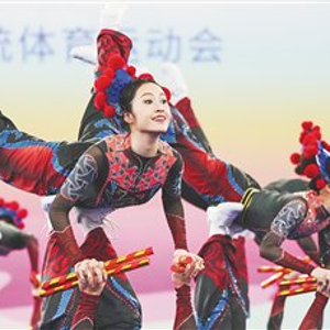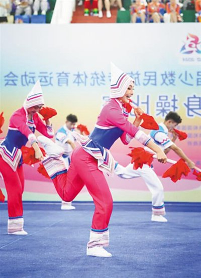 11月25日,第十二届全国少数民族传统体育运动会(以下简称运动会)民族健身操项目自选套路(轻器械)开赛,广东队以英歌舞演绎民族健身操,给人以力与美的震撼。