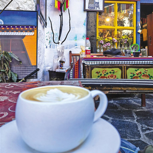 离开曲苏大院,记者来到了另一个取景地—贡桑孜大院。与曲苏大院相比,贡桑孜大院则显得更加现代和时尚。走进大院,就能闻到醇厚的咖啡香气,院子的角落里有一家咖啡店,这家咖啡店是旦增格桑和朋友共同经营的。