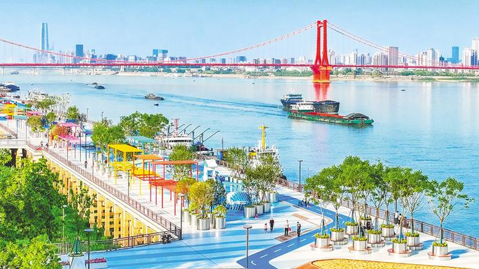 以人为本推进城市更新,实施生态改造后的长江武汉段,水清岸美、景色旖旎,居民获得感、幸福感大为提升。 (湖北日报全媒记者 薛婷 摄)