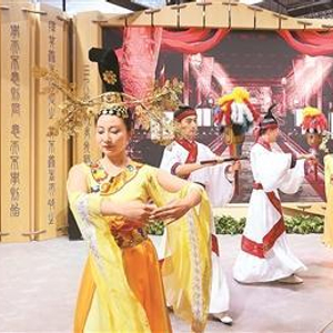 演职人员在山东省展台上表演舞蹈。新华社记者 方喆 摄