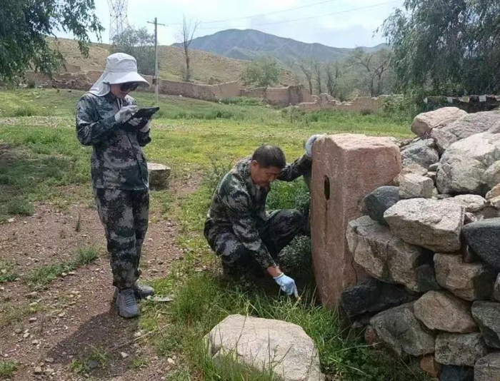 呼和浩特市武川县文物普查队员正在进行实地调查。