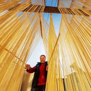 央广网兰州12月3日消息(记者李红军 通讯员陈争强 杨和俊)初冬的清晨,当第一缕阳光洒向大地时,甘肃成县索池镇的群众便开始忙碌起来,他们将刚制作好的手工挂面置于暖阳下晾晒,一排排洁白如雪的挂面宛若银丝,成为冬日里一道靓丽的风景线。