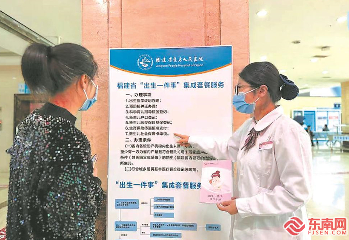 龙岩人民医院工作人员为群众介绍福建省“出生一件事”办理流程。