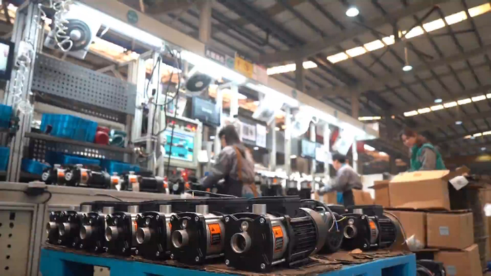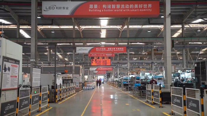 在利欧集团的商用泵生产车间,13条产线开足马力全速运转。这批水泵完成生产后,将陆续发往越南、马来西亚等国家和地区。