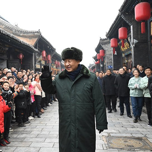 ——2022年1月27日,习近平总书记来到山西平遥古城,沿街巷察看古城风貌,走进推光漆器店等,了解当地文化遗产保护利用和开展特色经营情况