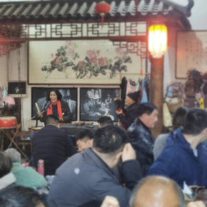 央广网淮北12月9日消息(记者周然)初冬时节,正是临涣老街热闹的时节。已传承上百年的老字号茶楼中,宾客满堂。听着淮北大鼓,喝着“棒棒茶”的传统,据说始于600多年前。