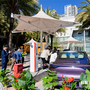全新换装的盘龙超充电站,现场配备华为全液冷超充分体式充电桩,可同时为8辆电动汽车提供快速充电服务,液冷枪最大充电功率为600kW,充电速度接近“一秒一公里”,能够满足大功率新能源汽车5分钟超200km的补电需求,极大解决了原先功率利用率低、充电慢等问题。未来,盘龙充电站还将有序开放包括V2G车网互动区、分布式光伏并网区、信息化展示区、智能光伏储能区等区域充分展示新型能源系统的构建流转。