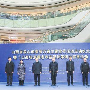 ①2024年1月11日,山西省“放心消费晋万家”主题宣传活动启动仪式暨《山西省消费者权益保护条例》宣贯活动在太原万达广场举行。