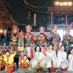 两岸汉服爱好者在西塘古镇共同演出西游题材情景剧。(图源:人民网/张盼 摄)
