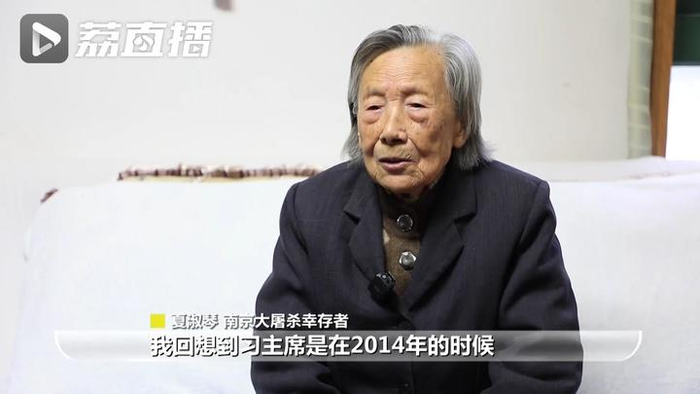 南京大屠杀幸存者夏淑琴说:“我回想到习主席2014年到南京来,当时我非常得激动,还跟我们握手,大家都是感觉温暖和热情,我永远不会忘记的。我希望世界和平,永远和平。”