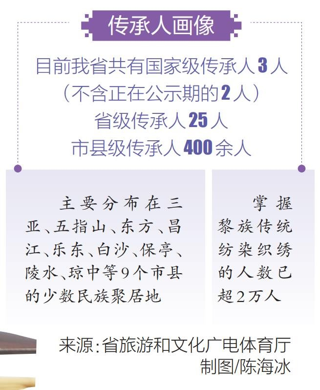 日前,黎族传统纺染织绣技艺从联合国教科文组织《急需保护的非物质文化遗产名录》转入《人类非物质文化遗产代表作名录》。“转名录”,意味着该非遗项目经过保护、发展而壮大,存续力不断增强,不再濒临灭绝,最明显的特征就是传承人不断增多,掌握这项技能的人群不断扩大。