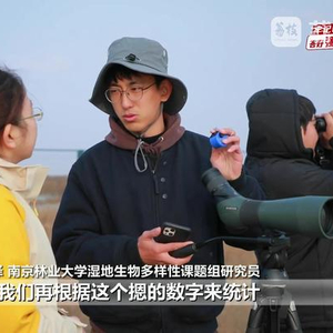 伴随着按计数器的哒哒声,南京林业大学湿地生物多样性课题组研究员方泽告诉记者,现在正统计秋季迁徙末期的鸟类数量。因为鸟的数量比较大,使用集团计数法一般是划定一个圈,50只摁一次,之后再根据摁的数字来统计。今年整个条子泥地区记录到了大约30万只迁徙候鸟。