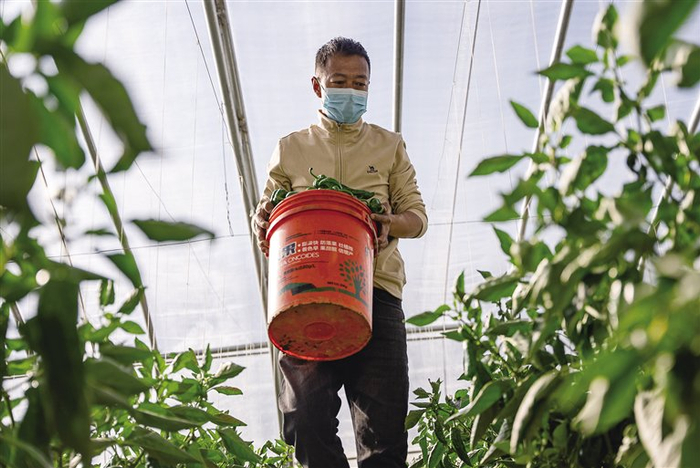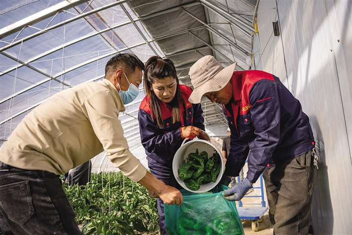 12月的拉萨冬意渐浓,园区连片的温室大棚,在冬日暖阳下熠熠生辉,宛如一个个孕育希望的“菜篮子”,丰富冬日市场供应。走进蔬菜大棚,棚内暖意融融、绿意盎然,黄瓜、西红柿、青椒等各类蔬菜均已进入成熟期,长势十分喜人。眼下,正是大棚青椒采摘期,一垄垄、一株株青椒挂满枝头,工作人员三五成群忙着采摘,现场一派繁忙景象。“采摘青椒要向上折,这样才不会损伤植株。”在旦增曲扎的指导下,工作人员很快完成了采摘工作,经过打包、称重后,37袋青椒被整齐地摆放在一起,等待着装车发货。