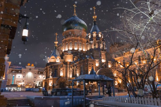 位于黑龙江省哈尔滨市道里区透笼街88号,是哈尔滨市著名的标志性建筑。教堂属拜占庭式建筑风格,是哈尔滨近代欧式建筑的典型代表,目前是哈尔滨旅游必打卡的网红景点。冬雪飘飘,大教堂流光溢彩,谁还不是在逃的欧洲公主呢?