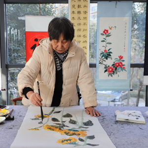清早,80岁的西安市未央区浐灞半岛社区居民吴延红正迎着朝阳在仔细勾勒点缀自己的新画作《向日葵》;隔壁的活动室,74岁的柔力球社团团长盛敏慧也带着大家一起随着音乐翩翩起舞……