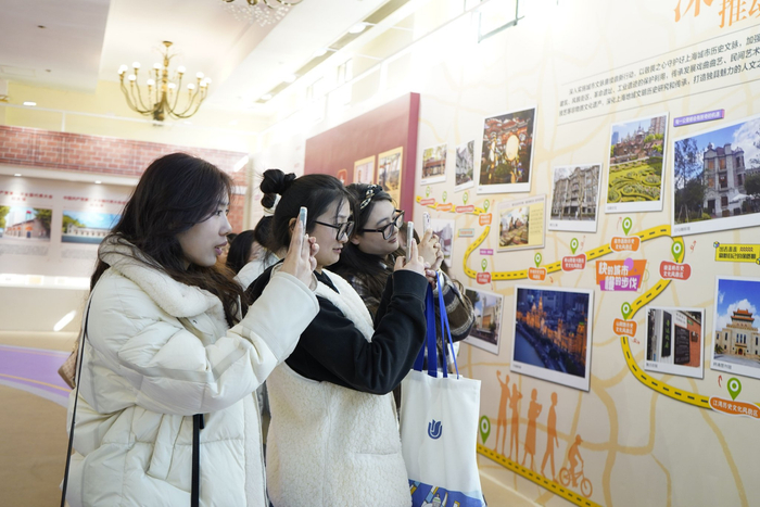 “这个郊野公园就在咱们家门口,下次我们一起去这里露营!”“这张照片里不是我们师兄吗?赶紧拍照给他看看!”“这里展示的就是我们单位的工作呀,大家在这里合张影吧!”展览期间,很多观众在展厅内找到了自己熟悉的场景,有的是自己从事的工作内容、有的是身边的便民设施和环境变化,大家纷纷在展板前打卡留影、上传新媒体平台,一条条朋友圈、小红书、抖音vlog动态,每个人都能在展览中找到自己。