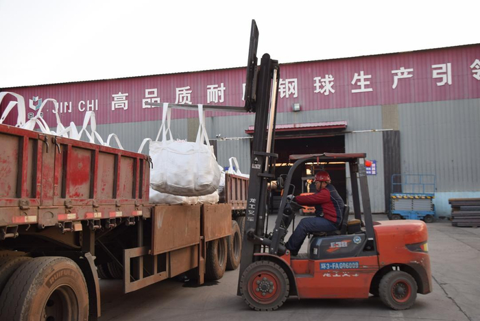 1月1日上午,在山东金池重工股份有限公司(以下简称“金池重工”)厂区内,一辆辆满载高锰合金耐磨钢球的货车缓缓驶出,朝着青岛港进发,随后将通过海运发往秘鲁钱凯港。这批货物也是2025年我省第一笔出口信用保险保障下的出运。