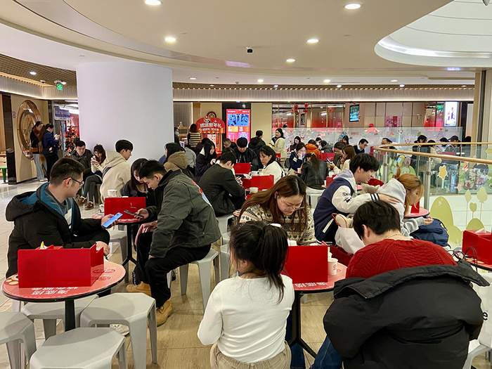 和楼上一样,海底捞的韩国面孔也不在少数。姜成焕表示,海底捞在韩国也有门店,但是“挺贵的,排队的人也多,所以来中国就顺便吃吃”,他之前只用海底捞调料做过麻辣拌,没真正吃上过,所以“充满期待”。