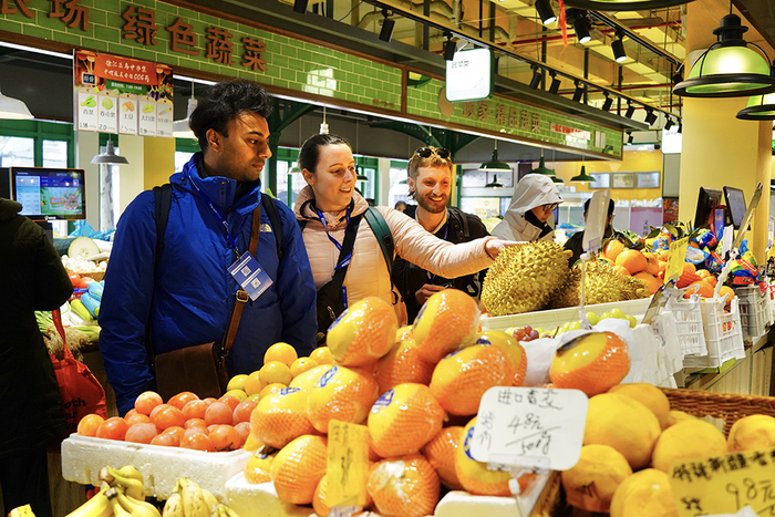 最近走在上海街头,听见五花八门的外语、遇见“洋面孔”已经变得稀松平常。在火锅店、烧烤店,可能也有一群外国人在排队等位,服务员操着还有些生疏的外语为顾客介绍菜品;在街头、菜场,外国人们品尝着奶茶、糖葫芦、面条、汤包,甚至还讨论着没见过的蔬菜水果、没吃过的鸭舌。