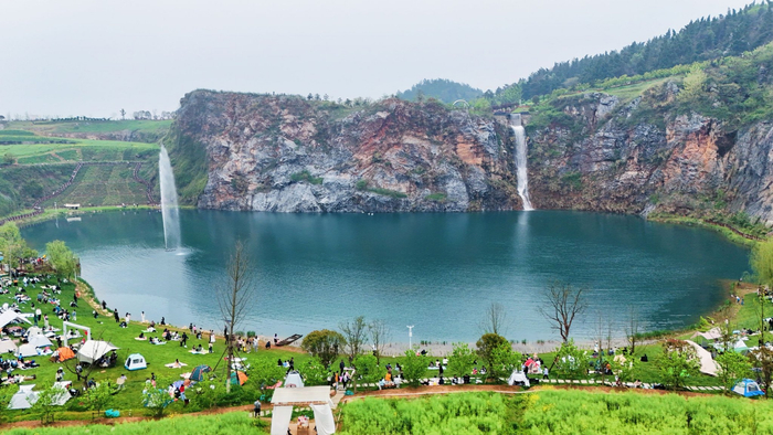 灵山生态文化旅游区,是武汉首个由废弃矿山改造而成的景区。经过生态修复治理,山体穿上了“绿衣”,地面披上了“锦被”,废弃矿坑成为“碧蓝之眼”……逐步向好的生态环境,使得灵山成功走上了文旅融合之路,吸引更多市民前往休闲,带动当地村民致富。