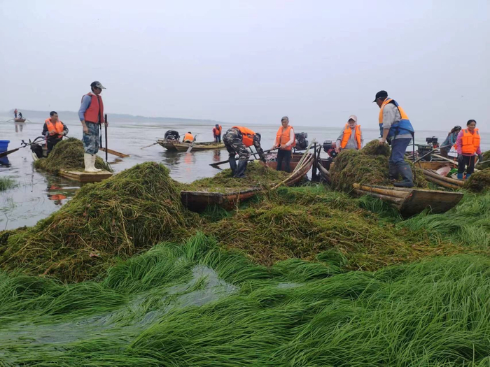 2024年,工作人员正在清理斧头湖生长过旺的水草。