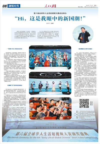 由人民日报海外网主办的第六届全球华人生活短视频大赛颁奖盛典2024年12月19日在人民日报社举行。大赛以“Hi,新国潮”为主题,自2024年6月份启动以来,共征集到来自30多个国家和地区的41万件作品,综合阅读量达59.4亿,创历届新高。