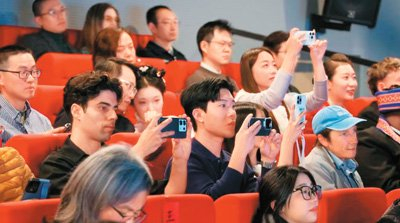 颁奖盛典现场,观众拍照留念。