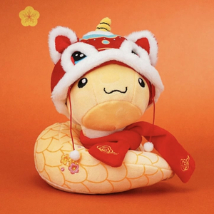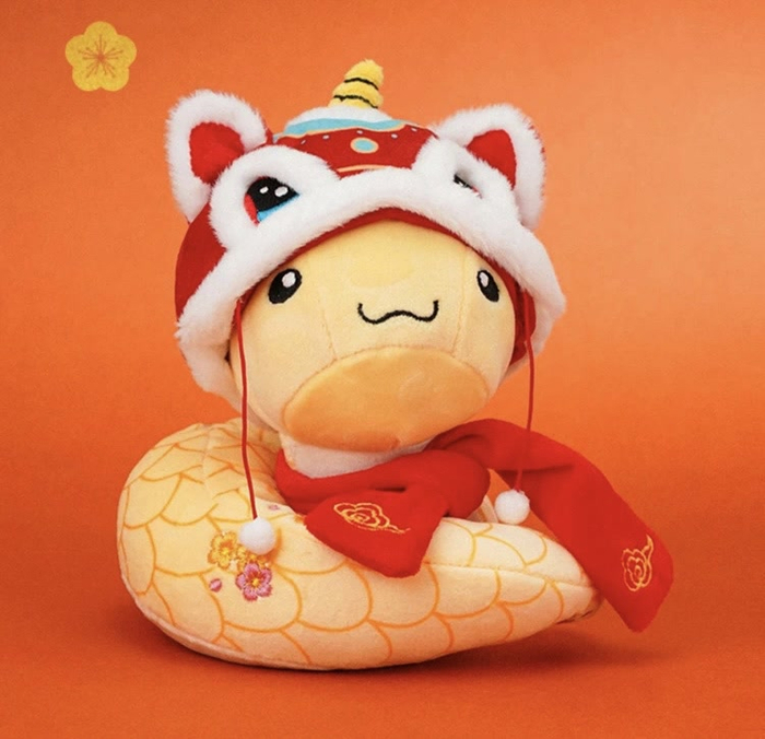 大火的“毛绒绒风”刮到了紫禁城。故宫博物院以院藏文物“十二辰钮章料——玉蛇钮长方章料”为灵感,设计了一款灵蛇献瑞玩偶套装。胖乎乎的金色毛绒小蛇,戴着虎头帽和红围巾,身上绣着梅花纹和四合如意纹。工作人员介绍,希望这只喜庆的小蛇,为观众送上梅开五福、事事如意的美好祝愿。