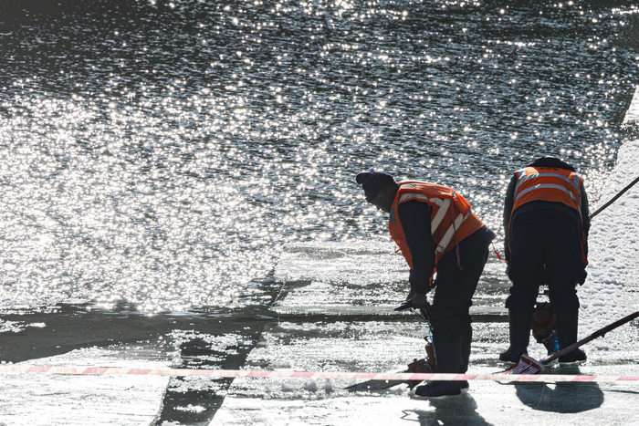 工作人员清理冰面,准备迎接游客。