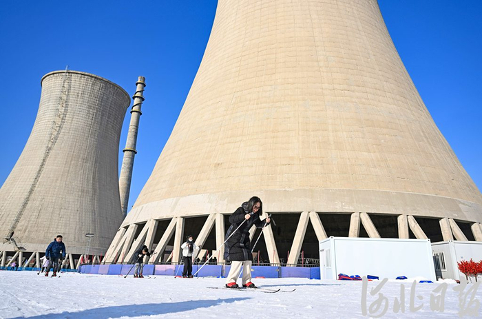 2024年1月28日,游客在首钢园内滑雪。(河北日报资料片)