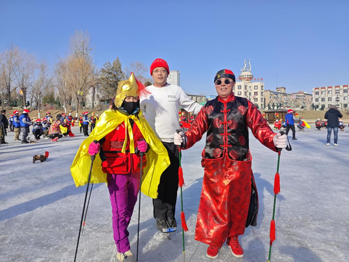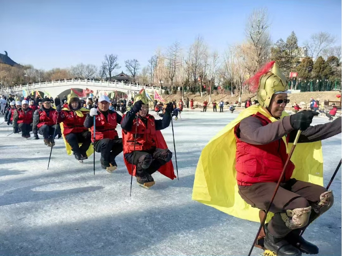 辽阳青年湖公园上,身披铠甲划着“单腿驴”的“军官”和“士兵”们仅依靠一直冰刀的力量,在冰与雪的舞台上自由飞驰,宛如灵动的水鸟,时而急速前进,时而优雅转身,留下一道道流畅的轨迹,每一个动作都是力量和技巧的完美融合。冰刀与冰面的每一次接触,都仿佛奏响了冬日里最动听的乐章,让来自五湖四海的观众们也为之热血沸腾,感受到了辽宁人民独有的热情与豪迈。
