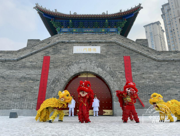 记者在现场看到,随着大红的帷幔徐徐落下,四幅寓意美好的楹联呈现在人们眼前,分别悬挂在德胜门、朝阳门城门内外两侧。据吉林市楹联协会主席赵文明向记者介绍,本次活动中的四副楹联均从“联墨迎春”吉林市2025春联征集活动中选出。德胜门两幅楹联分别为“德胜迎祥,千秋岁月千秋锦;江城展卷,一代风流一代歌”“风雨助征帆,船厂新舰重启碇;江山留胜迹,大东复兴再图强”;朝阳门两幅楹联分别为“山水绽丰姿,欣看古城迎盛世;雾凇披异彩,喜逢妙境著华章”“长白雪拥长白山,千山瑞景;朝阳门启朝阳路,一路繁花”。古朴的青灰色城门搭配喜庆的大红色春联,洋溢着浓浓的节日气息。本次活动作为吉林市文明实践活动的重要内容之一,现场舞狮跃动、乐曲欢奏,热闹的氛围吸引众多市民游客驻足观赏。