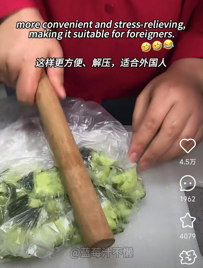 她告诉北青报记者,她平时就喜欢做饭,很热爱美食。最近这段时间,她注意到社交平台上突然来了好多外国人,“看到他们对中国菜感兴趣,看他们模仿着做鸡蛋羹、拍黄瓜可真太有意思了。”