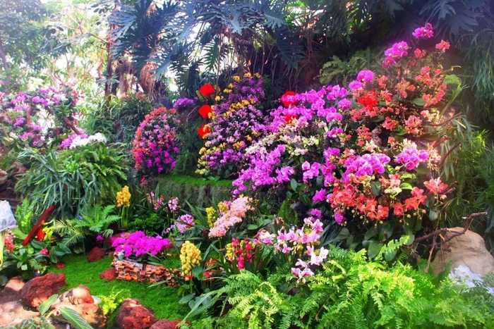 活动内容:以中国传统十大名花、热带兰花、高山杜鹃和苦苣苔等特色植物展示和中国传统植物文化的科普为主线,设立“花开富贵、灵蛇献瑞、高山来客、年年有鱼”四个展区,科普相关知识,营造春节氛围。