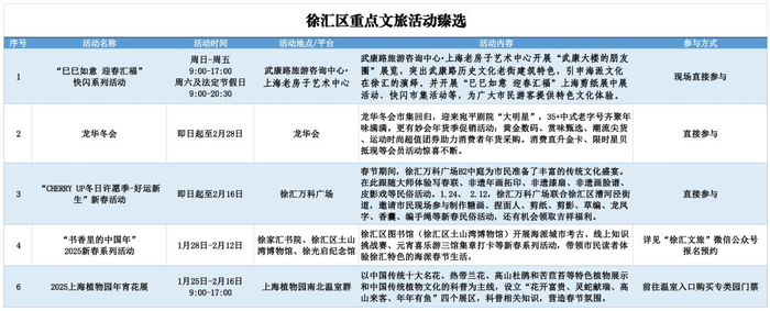 参与方式:详见“徐汇文旅”微信公众号报名预约