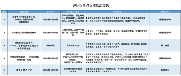 活动内容:蛇来运转,八方来财。庆新禧,闹元宵,新春精彩连连,来普陀感受热闹年味,常逛常有新发现。