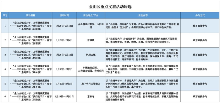 活动名称:“金山古镇过大年,文明健康度新春”——2025年金山区“我们的节日·春节”系列活动(枫泾镇)