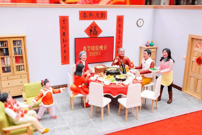 省级非遗项目武汉面塑传承人刘洁作品《巳巳如意团圆年》。